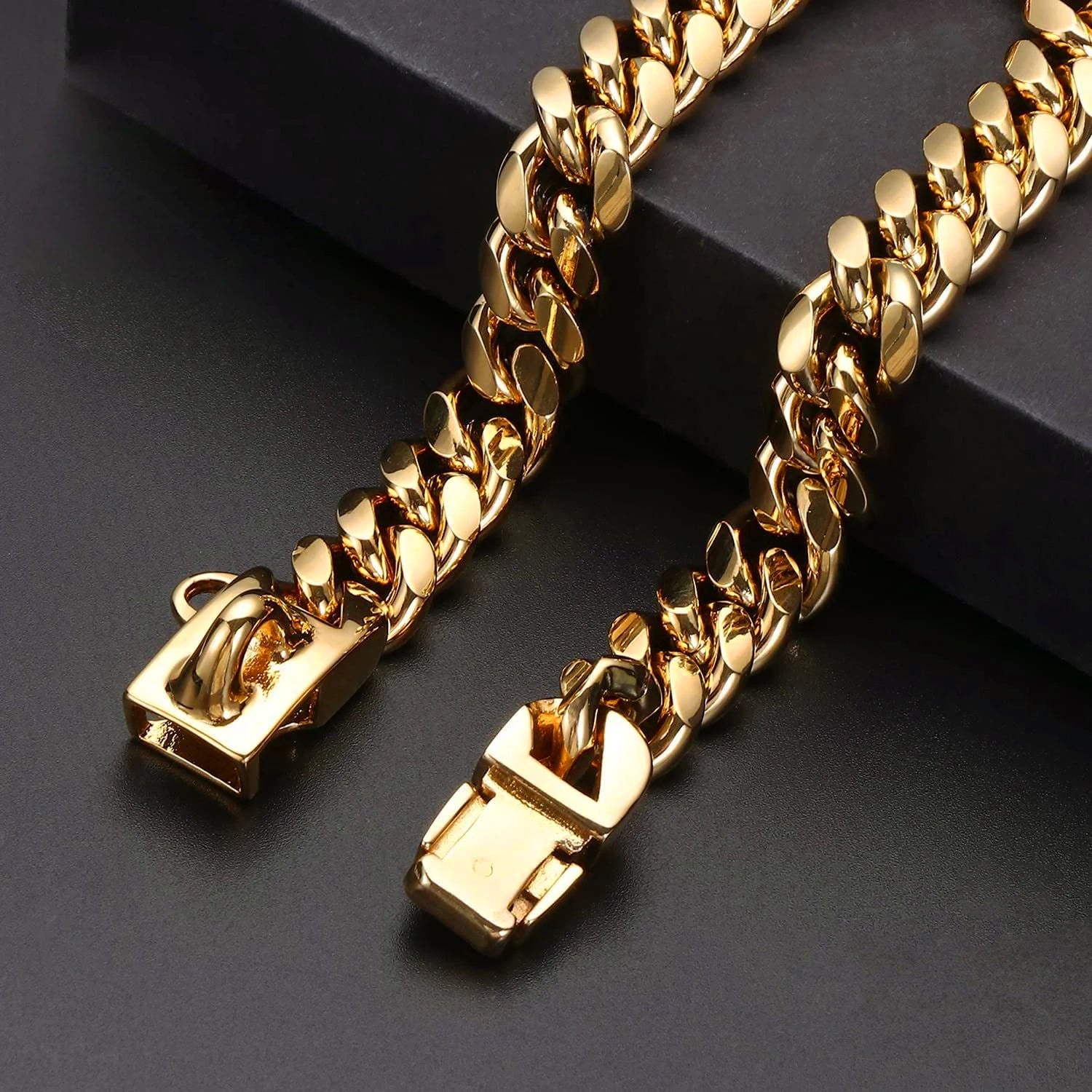 14mm Gold Dog Chains Collar for Dogs Stainless Steel Metal Luxury Necklace Pet Accessory