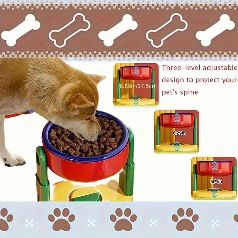Dog Bowl, Pet Cervical Protector, Height-adjustable Feeder, Dual-purpose Water and Food Bowl for Cats and Dogs, Anti-tip Design.