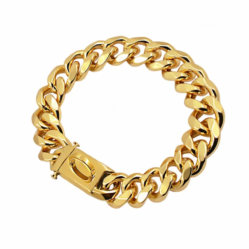 Gold Dog Collar Stainless Steel Pet Metal Choker 19mm Wide Lead for Medium Large Dogs Pet French bulldog Labrador Retriever