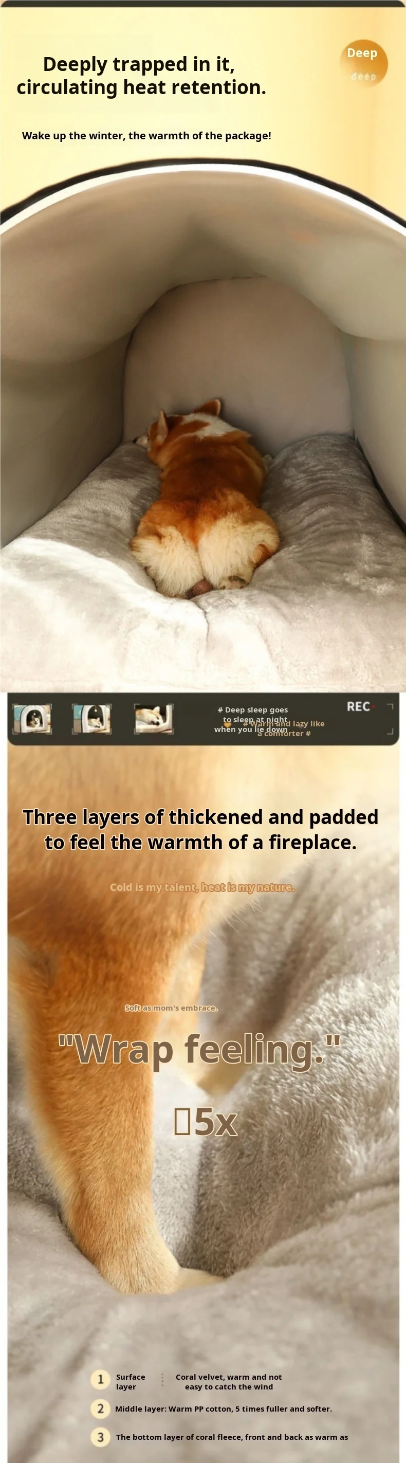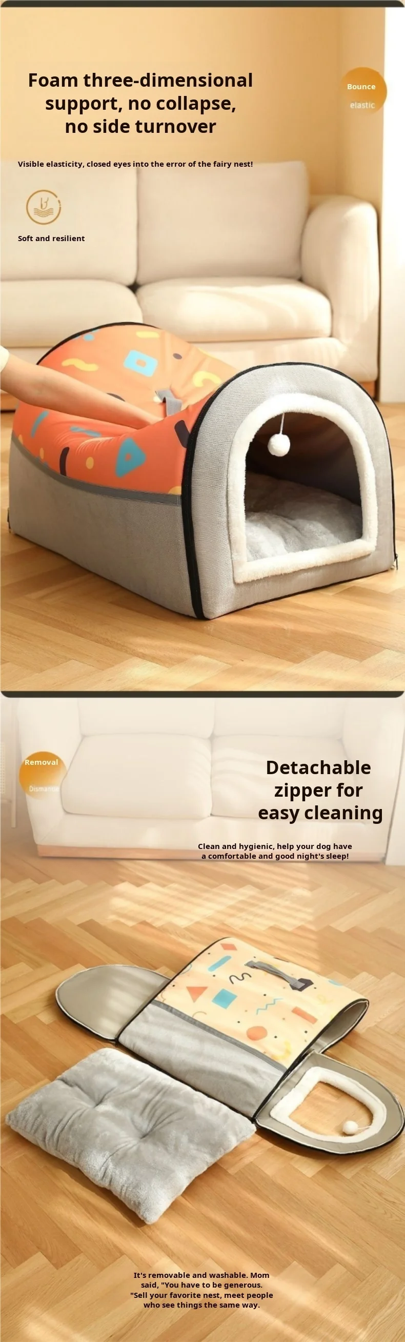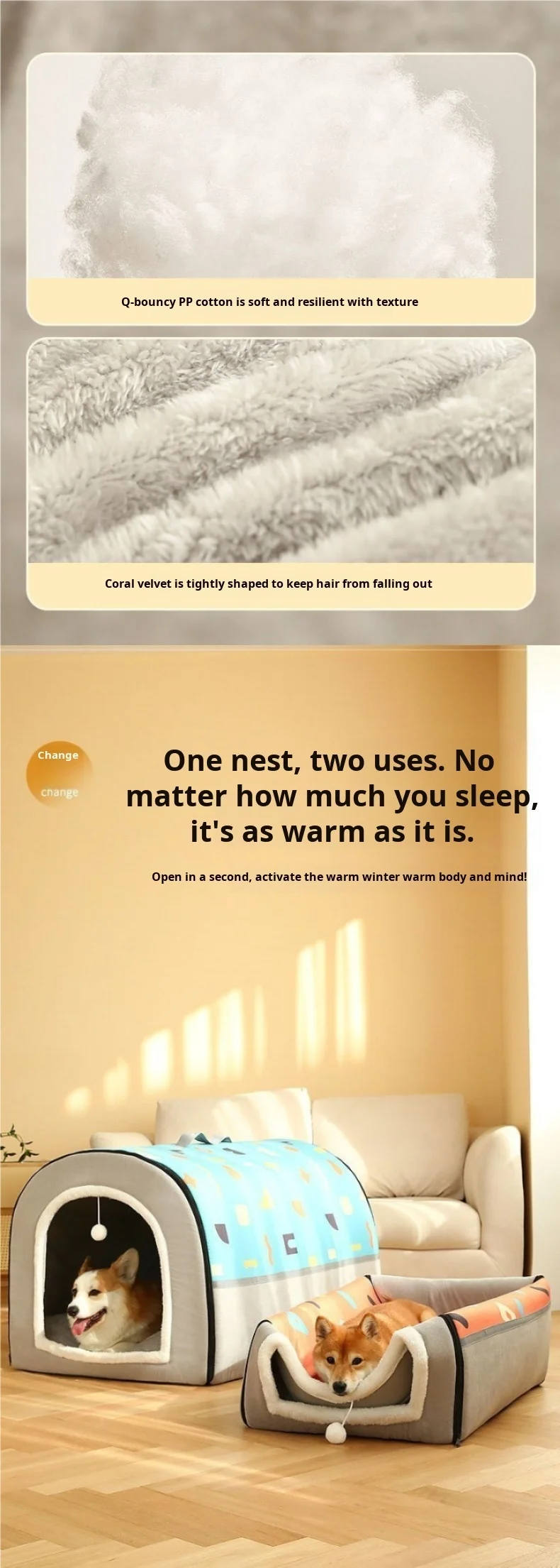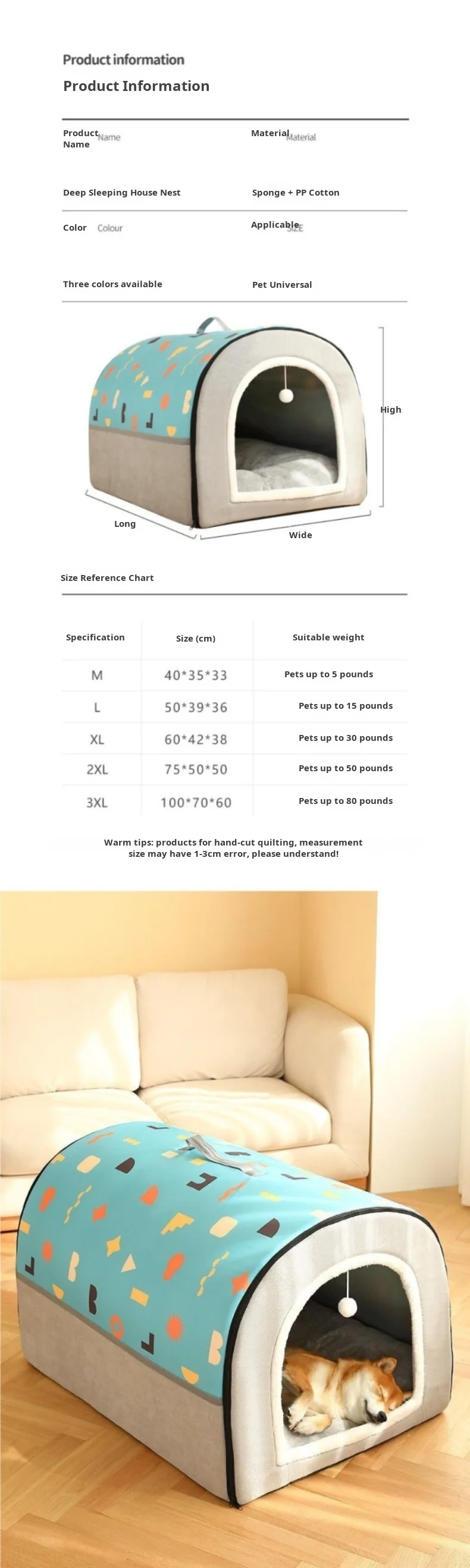 Big Bully Dog Kennel Tunnel Warm Dog House Detachable Pet Sleeping Bed Semiclosed Pet Supplies Soft Non-slip Dogs Kennel